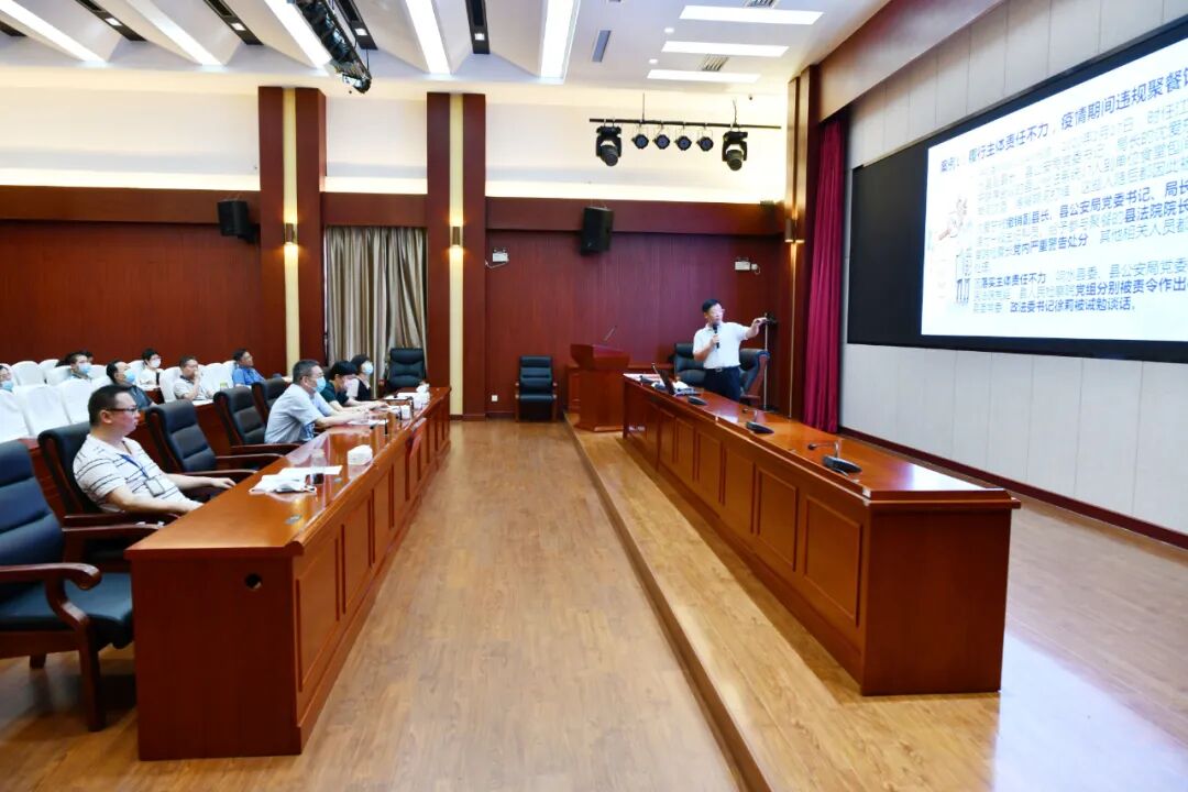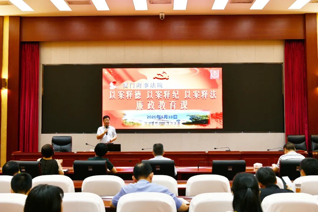 陈建南围绕当前法院系统正在开展的“坚持党对司法工作的绝对领导、坚持中国特色社会主义法治道路”专题教育、“以案释德、以案释纪、以案释法”警示教育和“三个规定”专项整治活动,以张坚、周内金、张家慧等12个法院系统违纪违法典型案例,从“坚持党性重立德、心存戒惧严遵纪、公正用权须守法”三个方面,生动诠释了开展警示教育的重要性、必要性,并对如何锻造忠诚担当清正廉洁的海事审判队伍提出五点要求: