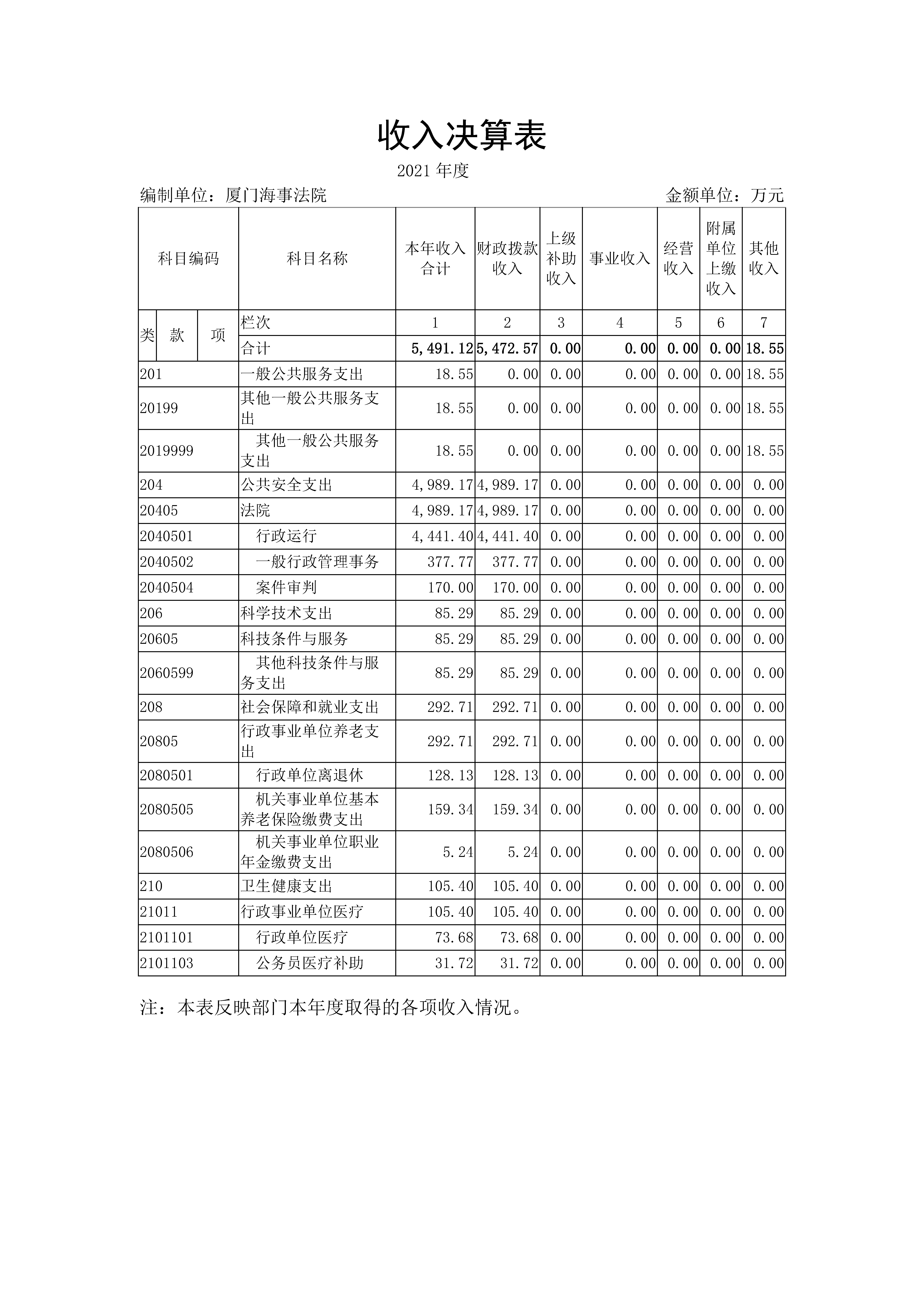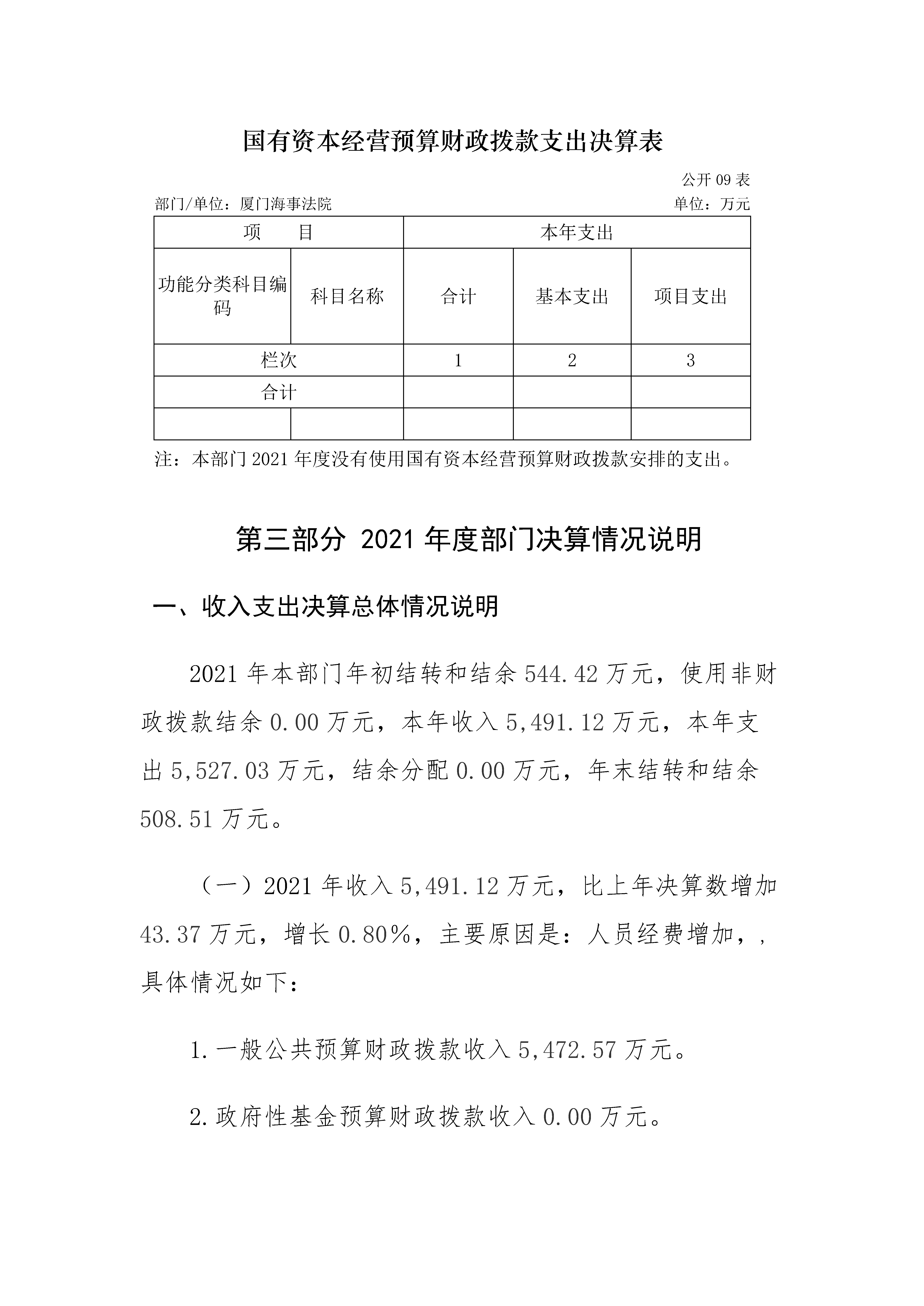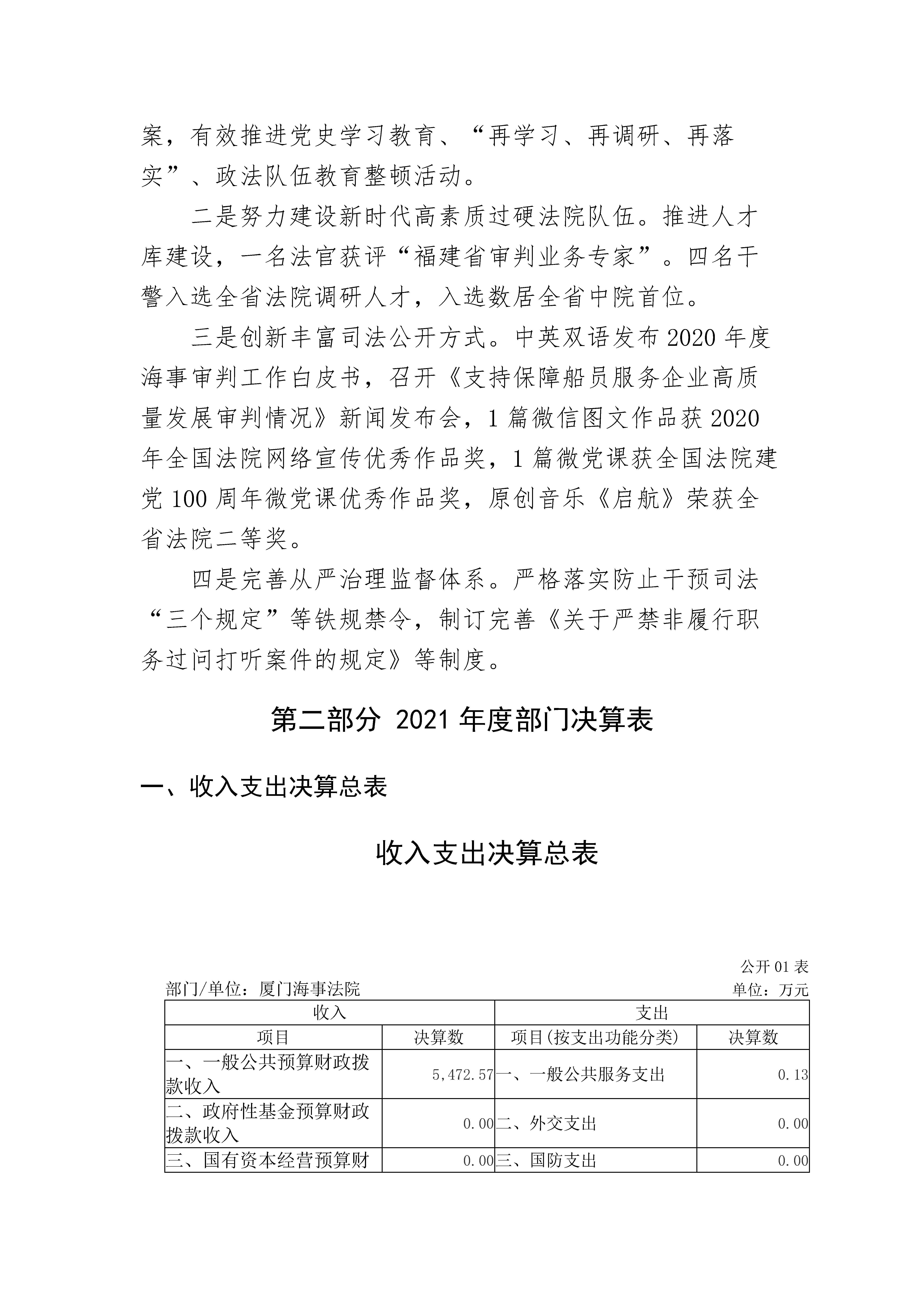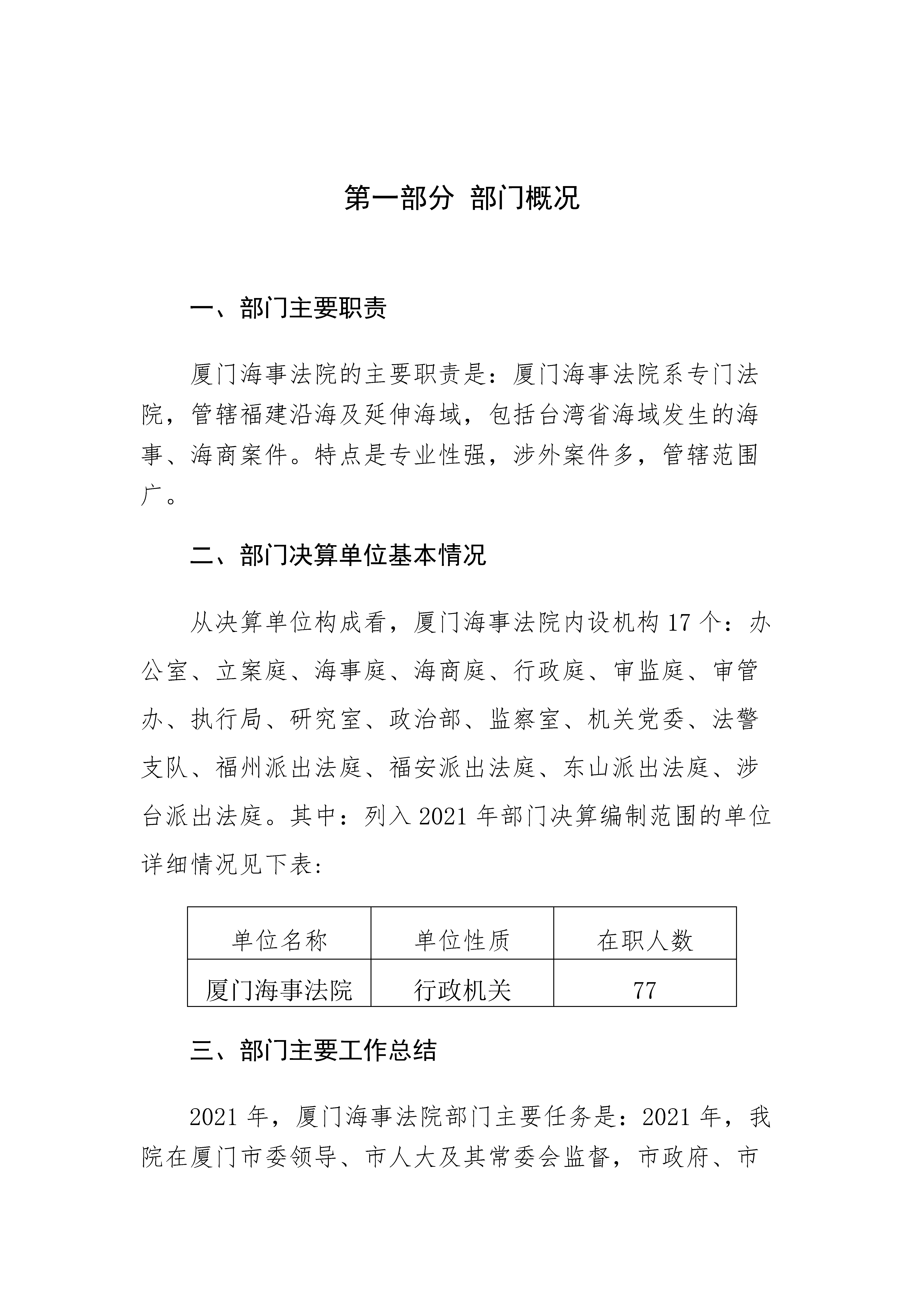 厦门海事法院2021年度部门决算说明