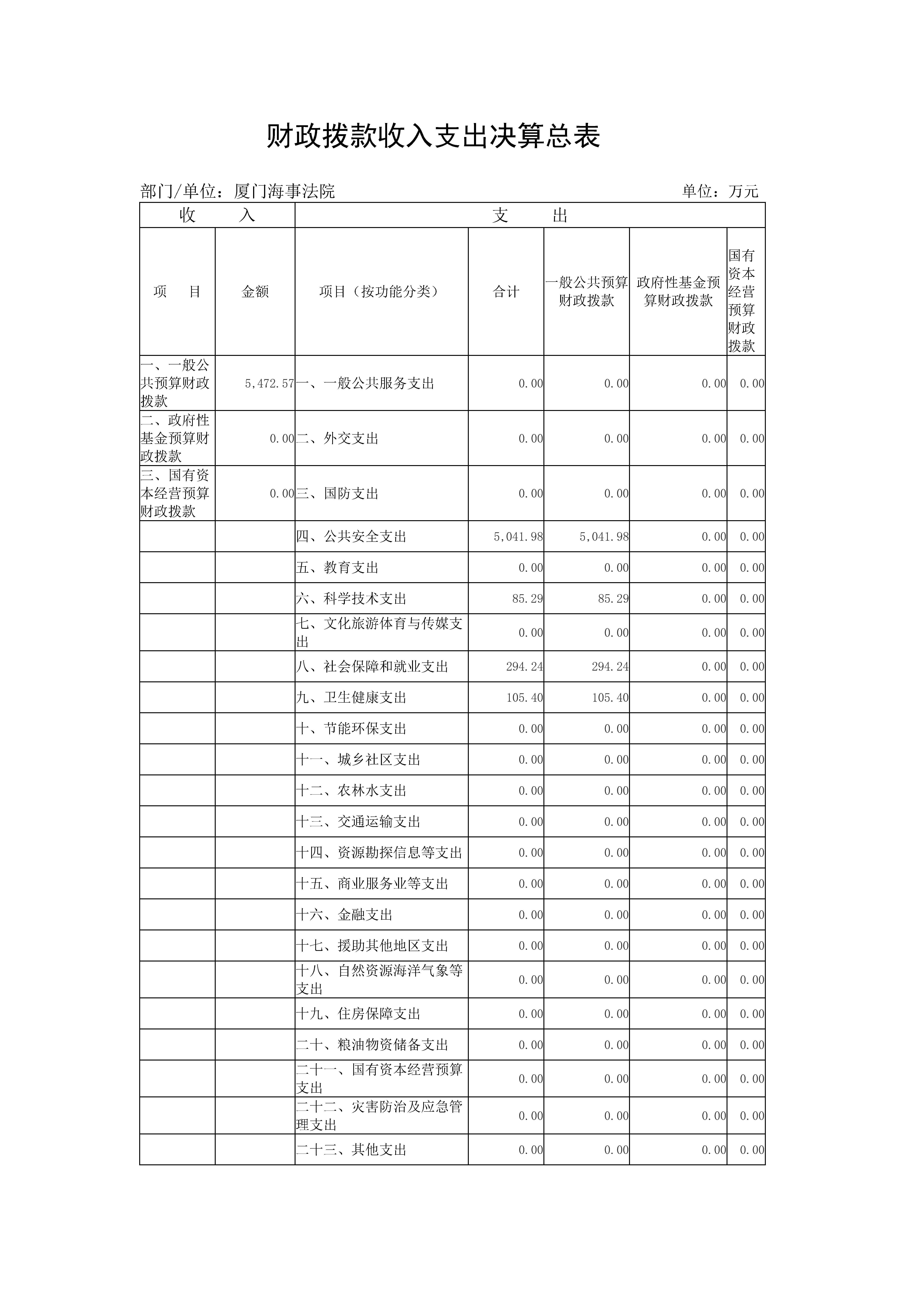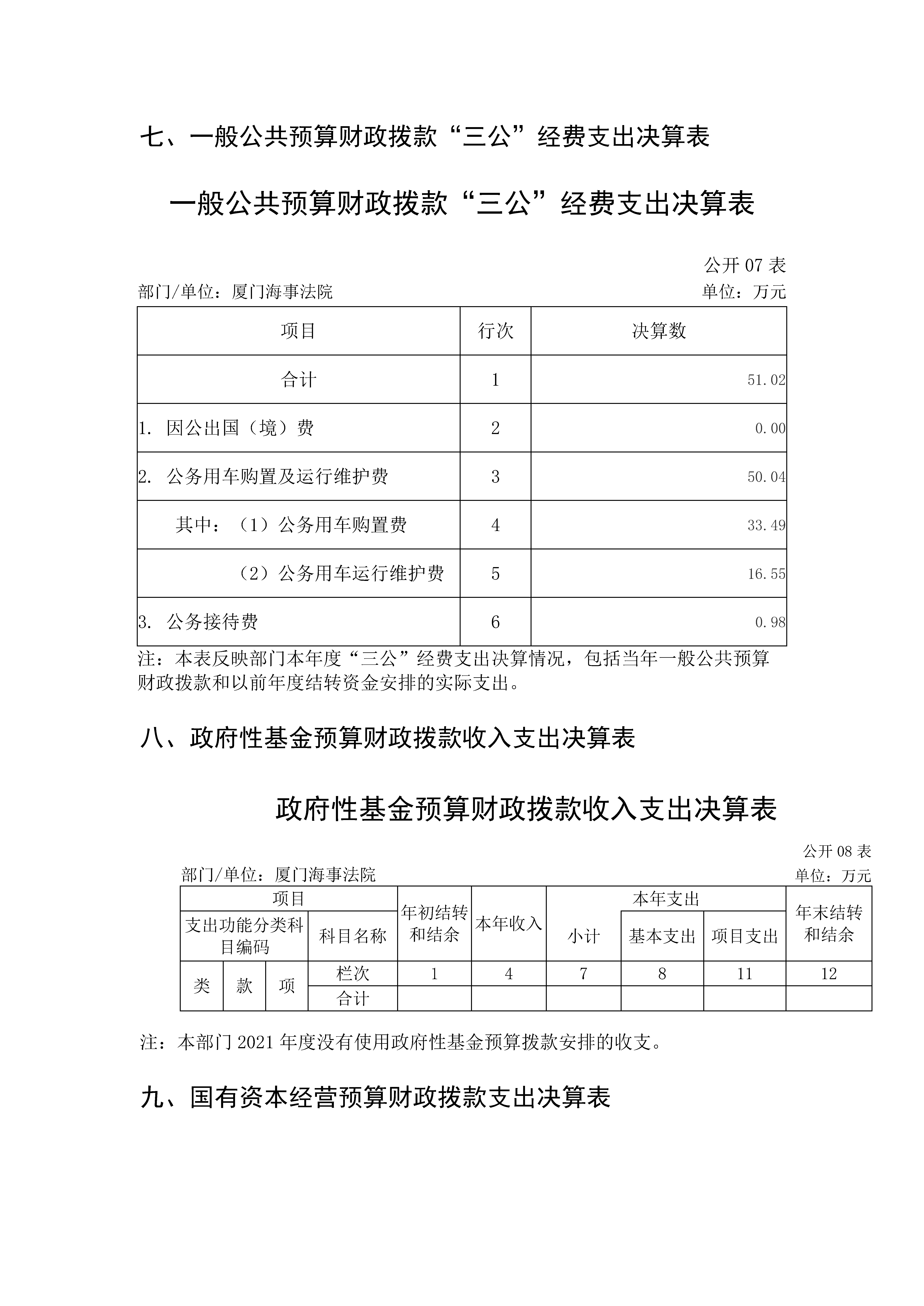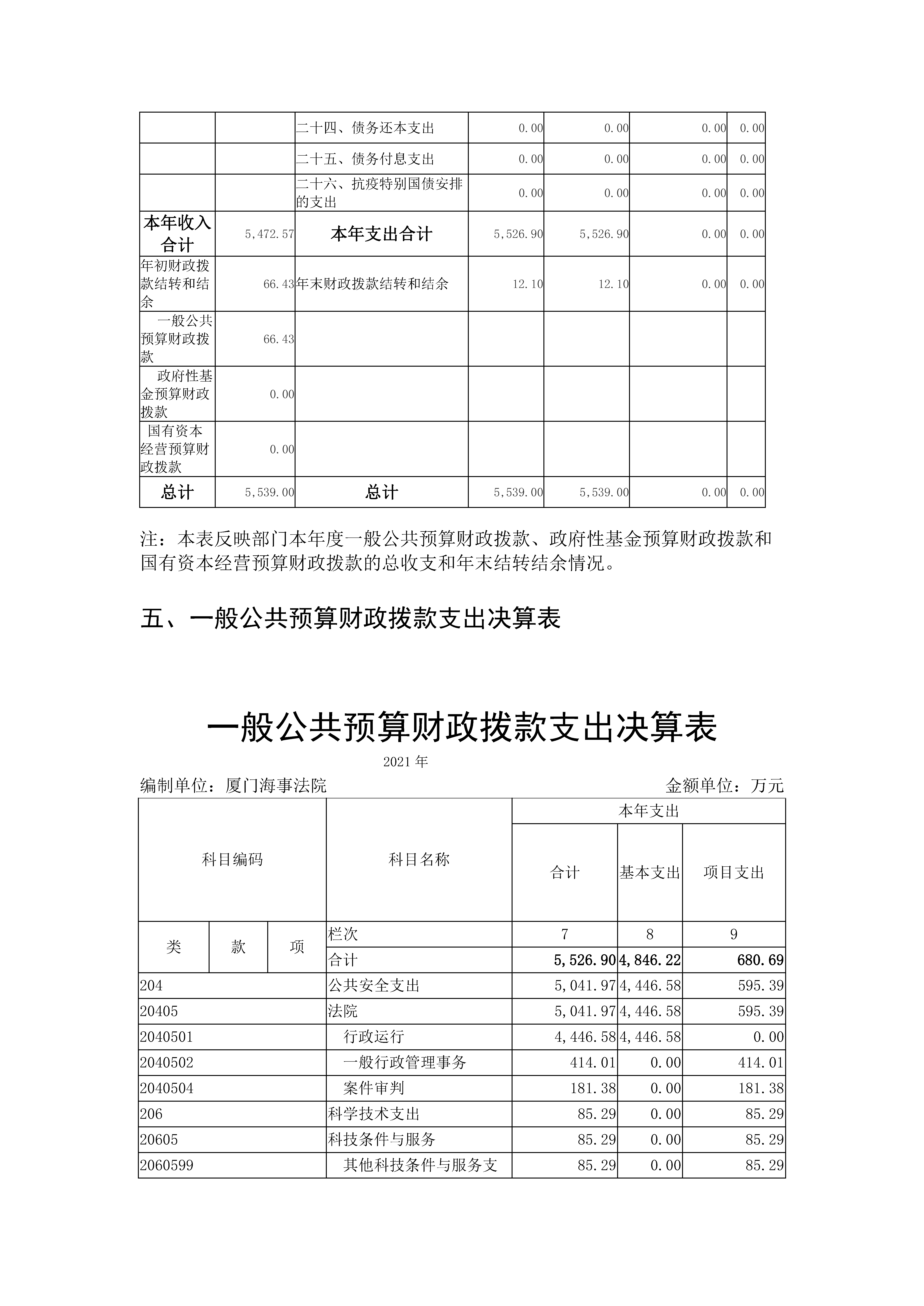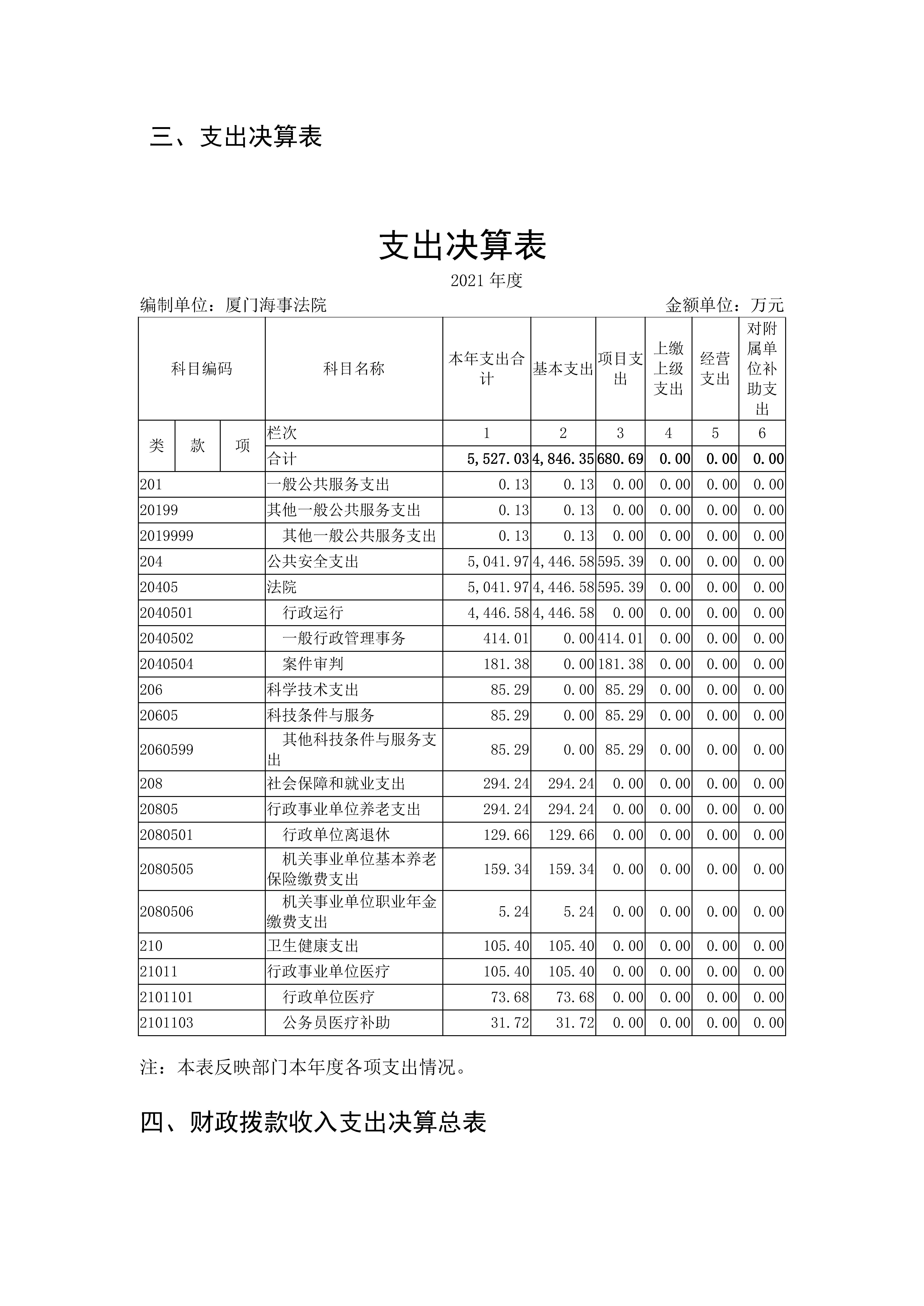 厦门海事法院2021年度部门决算说明