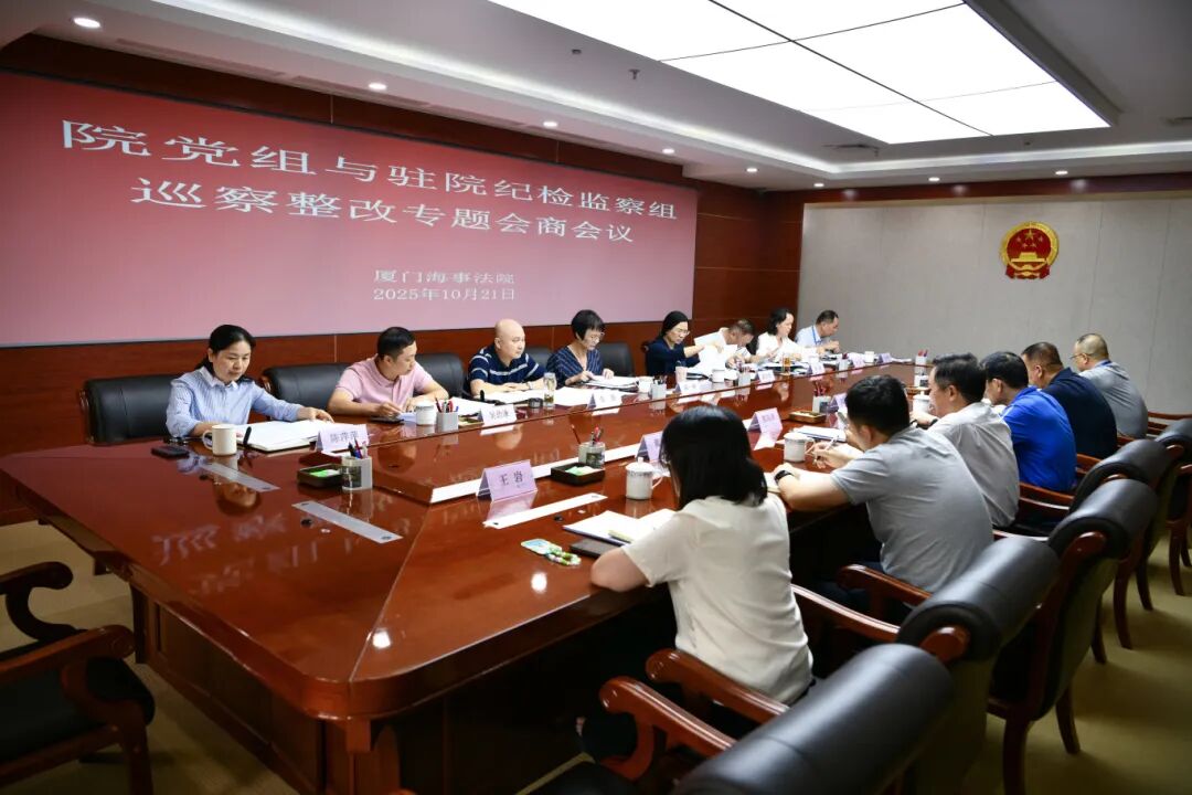 为持续强化政治巡察定位,精准提升巡察整改质效,中共厦门海事法院党组会同驻院纪检监察组召开巡察整改专题“组组会商”会议。