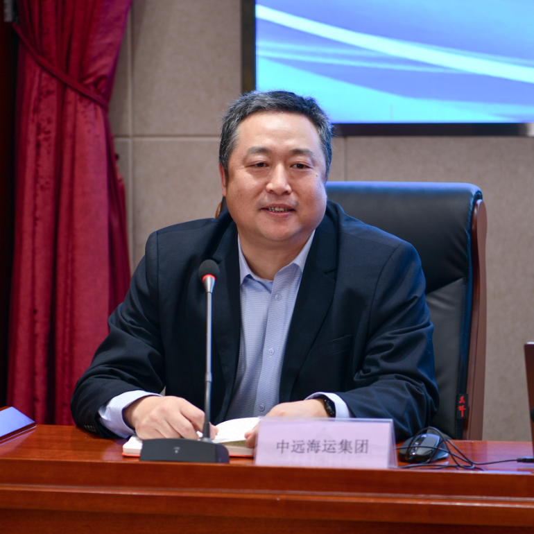在介绍环节,中远海运集团自保公司总经理助理何江海以集团经营业务及全球布局为视角,讲解了全球化背景下航运、港口、物流、产融、自保等领域的发展情况,并就产业结构的数字智能转型和绿色低碳发展领域的创新实践与成果进行了介绍。